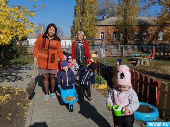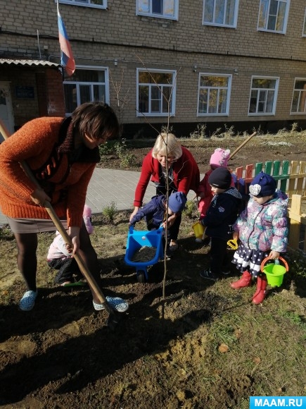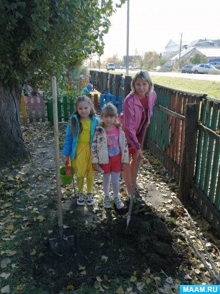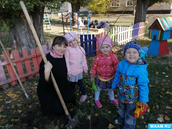В октябре в нашем детском саду прошёл День древонасаждения, высажено 10 саженцев деревьев.